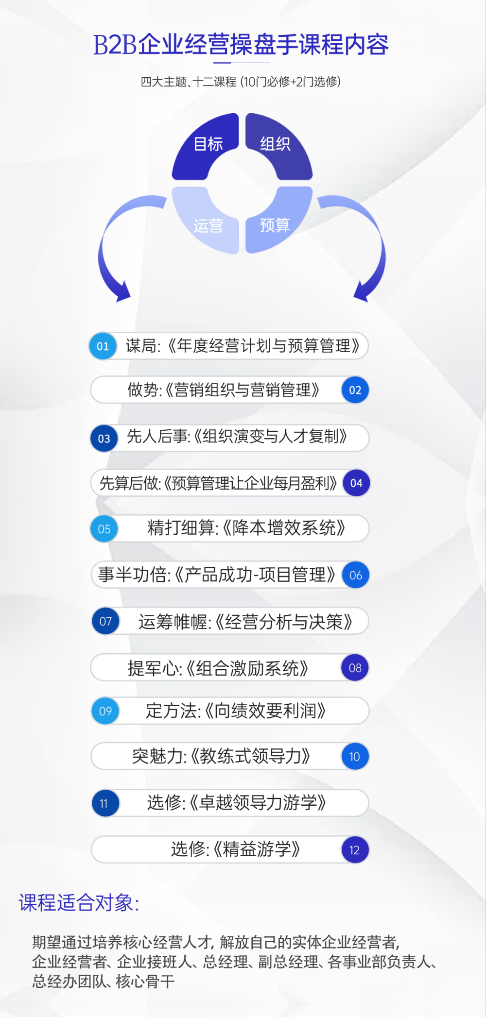 用系統(tǒng)、實(shí)效、落地的課程,把核心管理人員培養(yǎng)為能打勝仗的經(jīng)營(yíng)者