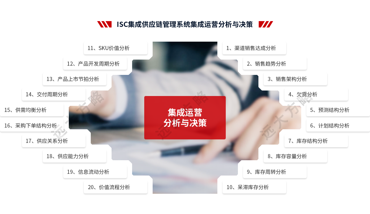 2、輔導(dǎo)模塊:推行ISC集成供應(yīng)鏈管理,主要圍繞產(chǎn)品運(yùn)營管理、接單規(guī)則和庫存管理、銷售預(yù)測(cè)管理、S&OP管理、公司計(jì)劃模式優(yōu)化、物料管理體系等